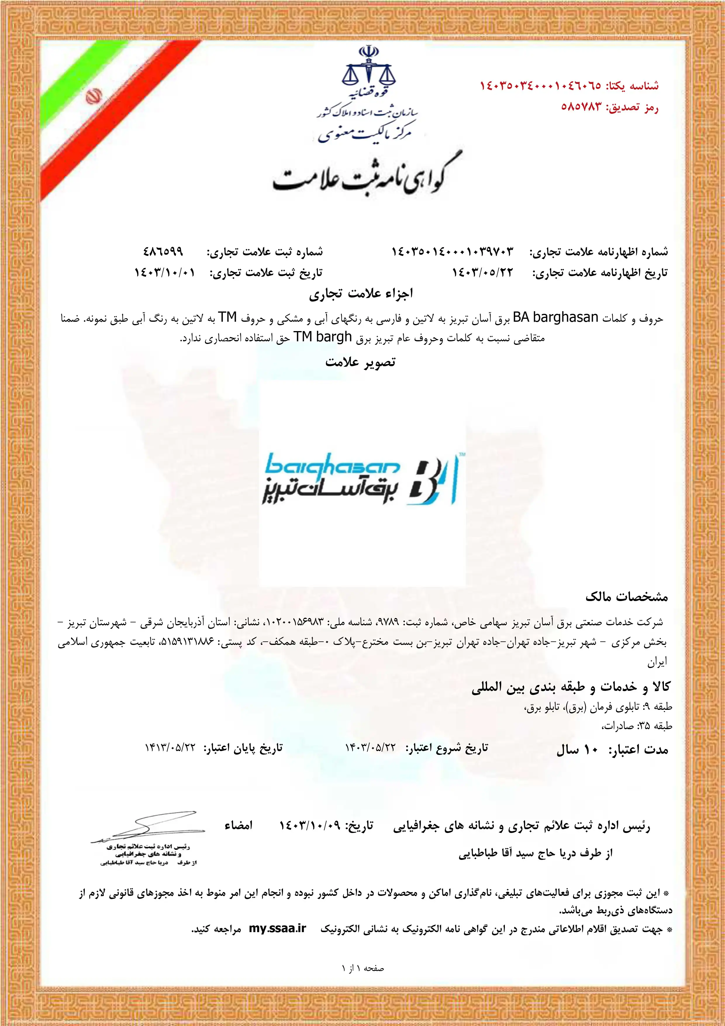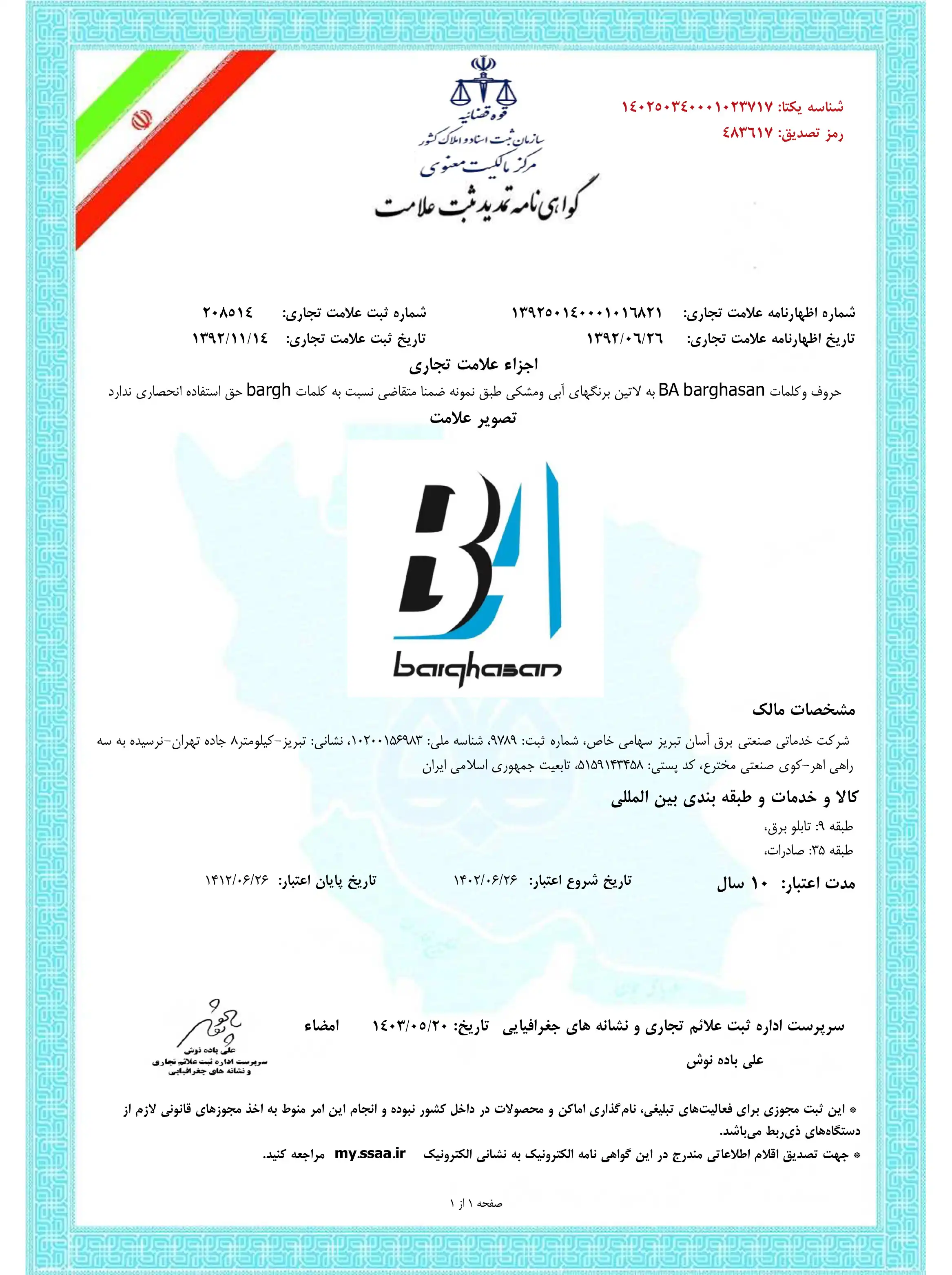 - گواهی ثبت علامت تجاری